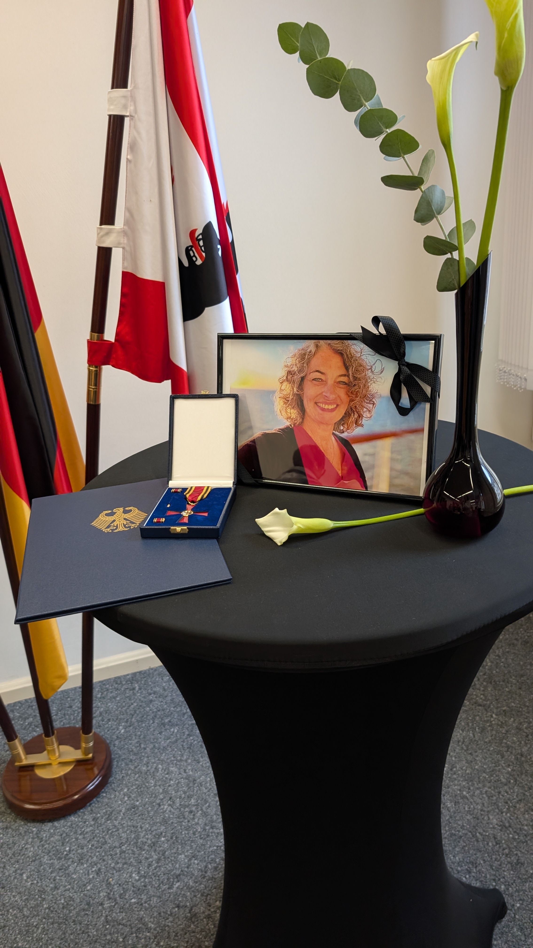 Ihrem Ehemann wurde der Verdienstorden der Bundesrepublik Deutschland, das Verdienstkreuz am Bande ausgehändigt, stellvertretend für seine Frau Ute Opper.